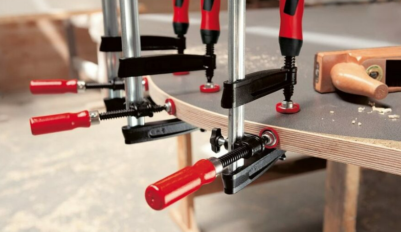 În combinaţie cu cleme cu şurub, pentru presarea stinghiilor frontale şi a celor pentru muchii, precum şi pentru strângere din trei părţi. Totodată pentru sprijinirea glisierei la strângere cu cleme cu şurub foarte lungi pentru stabilizarea presiunii de strângere.