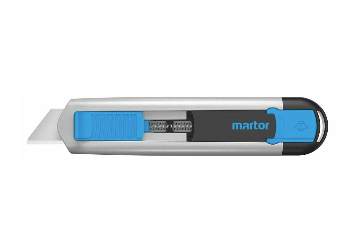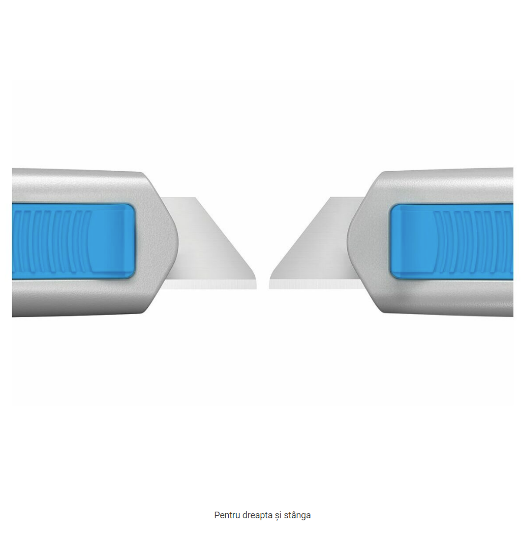 Cuţit de siguranţă cu adâncime de tăiere de 18 mm şi retragere automată a lamei. Mâner ergonomic din aluminiu, cu strat Soft-Grip pe cursor, pe o suprafaţă mare. Schimb sigur şi simplu al lamei (lamă de schimb sau lamă ceramică ). Stângacii întorc o dată lama de calitate în mâner. Lama se poate folosi în 2 moduri.