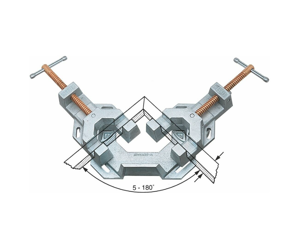 Pentru prinderea pieselor la lucrări de sudură sau montare. Unghi de strângere reglabil progresiv la 5° − 180°.