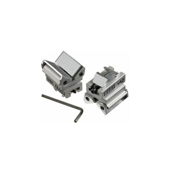 Compus din placă de bază şi 2 elemente de prindere reglabile; placa de bază şi elementele de strângere din fontă de înaltă calitate, şurub cuprat, recomandat în special pentru lucrări de sudură. Orificiile longitudinale laterale permit fixarea pe mese de sudură sau dispozitive.