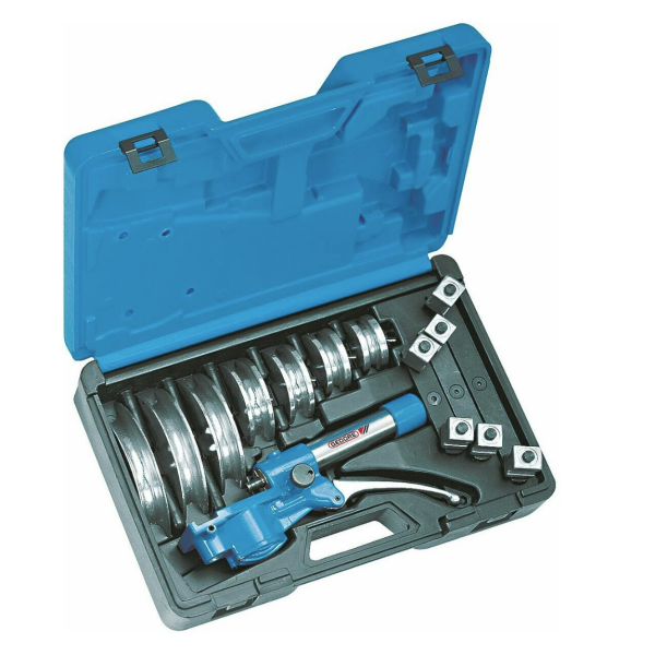 Dispozitiv hidraulic robust pentru îndoit ţevi cu sistem hidraulic închis şi arc de întoarcere pentru control mai bun asupra pistonului. Glisoare şi segmente de îndoire din fontă, piston performant cu o presiune de apăsare de 450 bari. Garniturile de înaltă calitate pentru pistoane elimină neetanşeităţile şi prelungesc durabilitatea. Glisoare cu afişaj pentru unghiul de îndoire. Îndoirea ţevilor în siguranţă cu ajutorul sistemului închis. Modelul special de pârghie asigură protecţia împotriva suprasolicitării. Se livrează în cutie din lemn cu închidere.