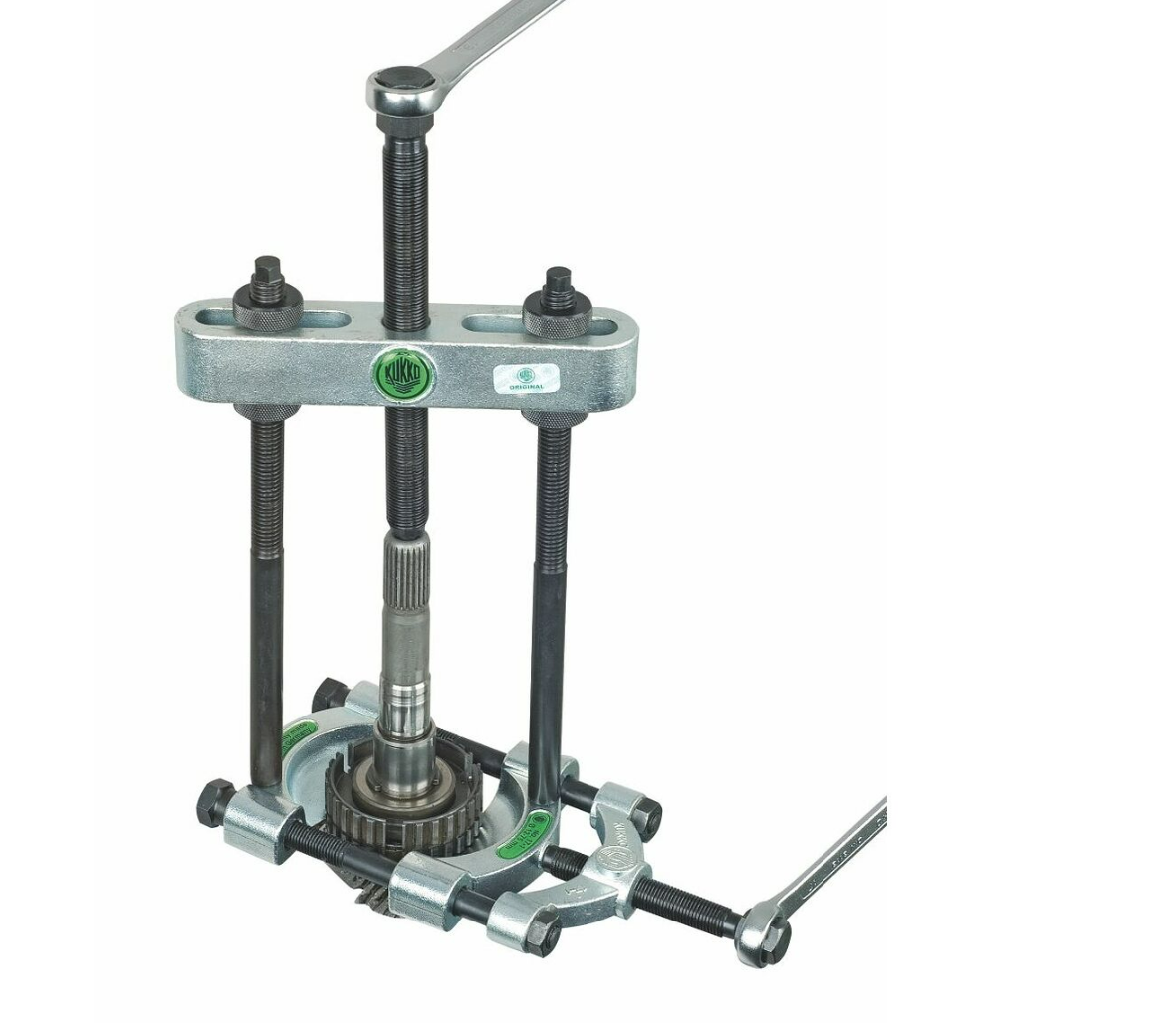 Extractor: Împreună cu separatorul pentru extragerea rulmentului desprins din locaş (în acest scop, bolţurile de tracţiune se înşurubează în găurile filetate ale fălcilor de separare).