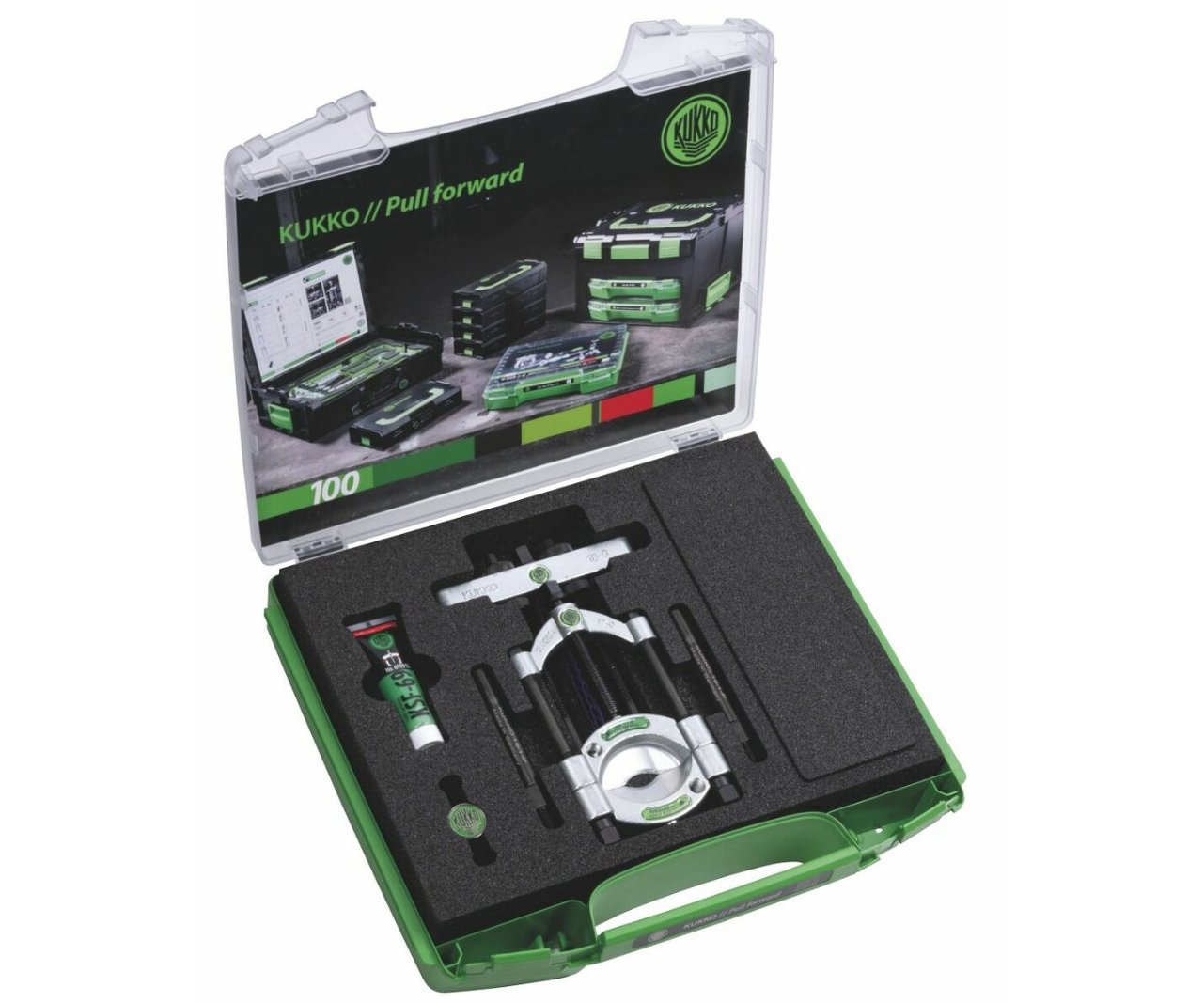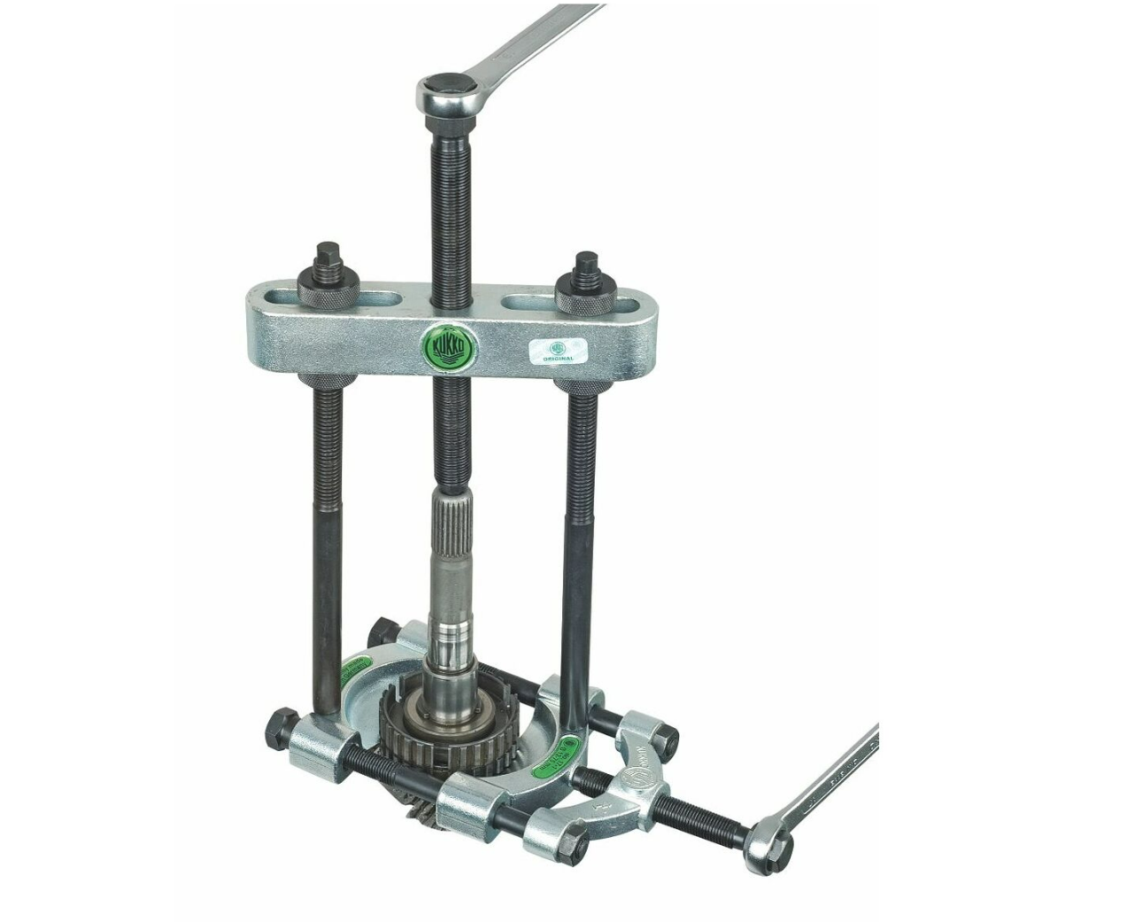 Extractor: Împreună cu separatorul pentru extragerea rulmentului desprins din locaş (în acest scop, bolţurile de tracţiune se înşurubează în găurile filetate ale fălcilor de separare).
